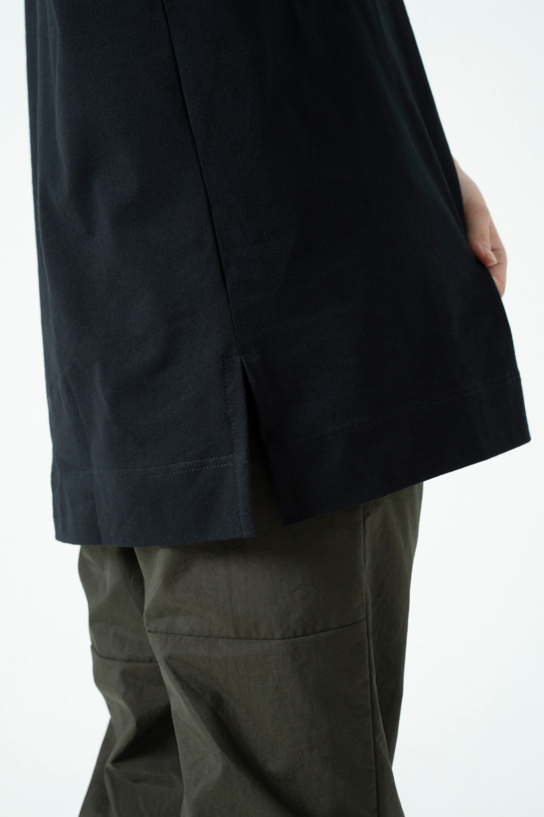 ジャストフィットなシルエットに加えて着丈を長めに設定し、深めのサイドスリットが特徴的。