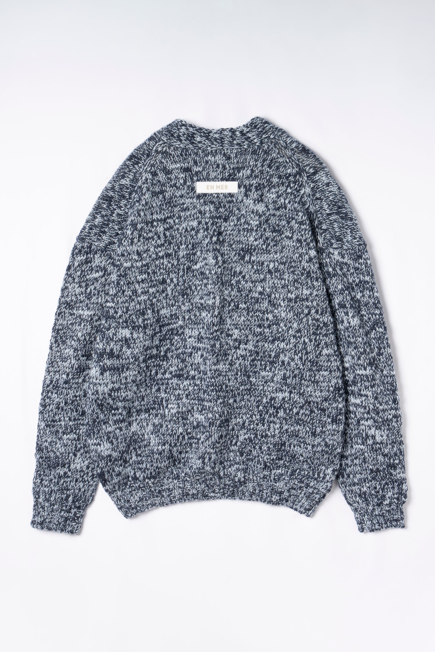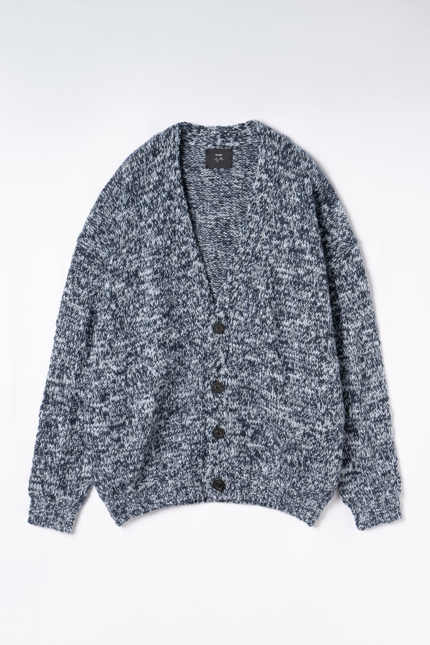 ブランドアイコンを背面に配置した、ウールニットカーディガン。